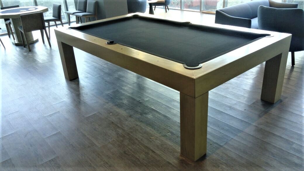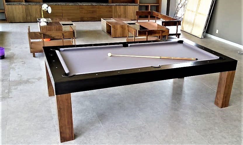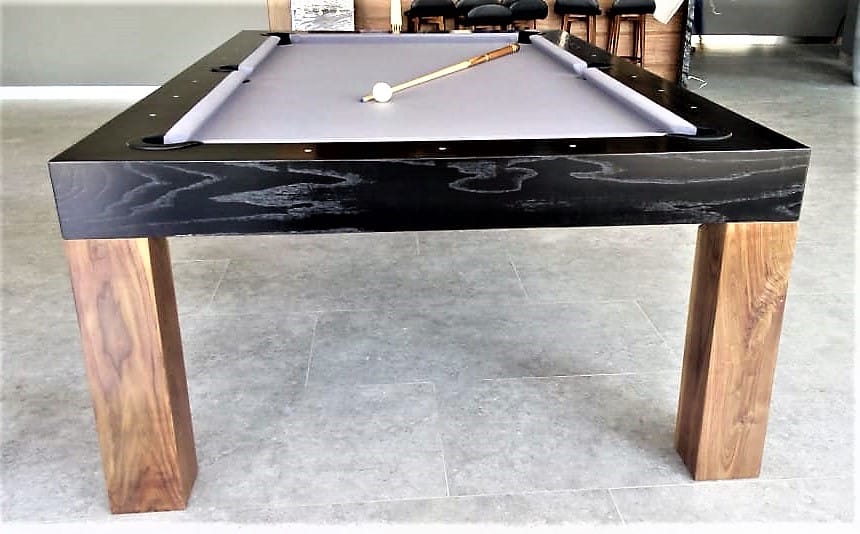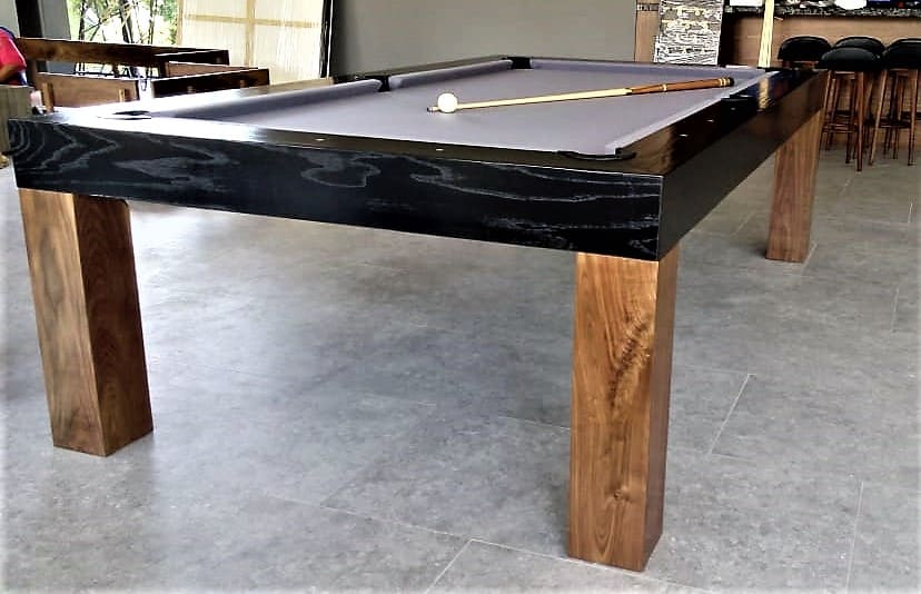 Mesa Comedor Madera de Encino Entintado en Negro y Patas de Nogal