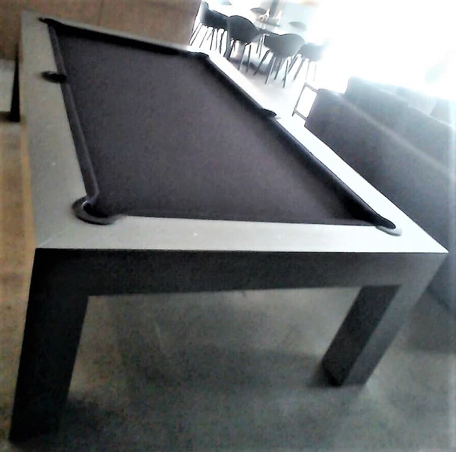 Venta de Mesa Comedor Madera de Encino Entintado en Negro y Patas de Nogal.